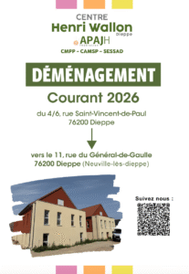 Toute l’équipe du Centre Henri Wallon Dieppe (CMPP – CAMSP – SESSAD) Fédération APAJH de Dieppe est heureuse de vous annoncer son déménagement courant 2026